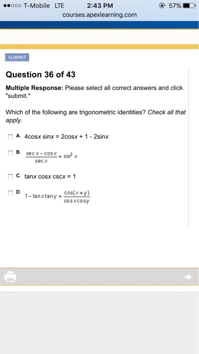 Solved Which Of The Following Are Trigonometric Identitie