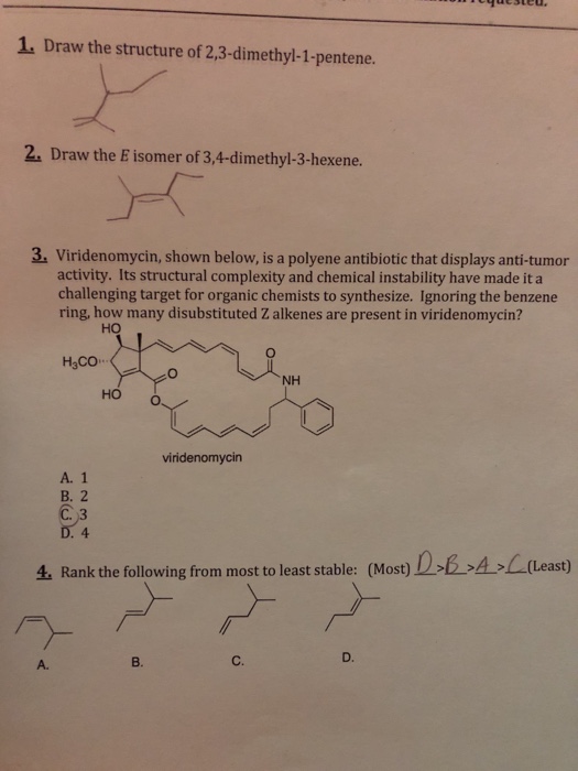 Solved 1 Draw The Structure Of 2 3 Dimethyl 1 Pentene 2