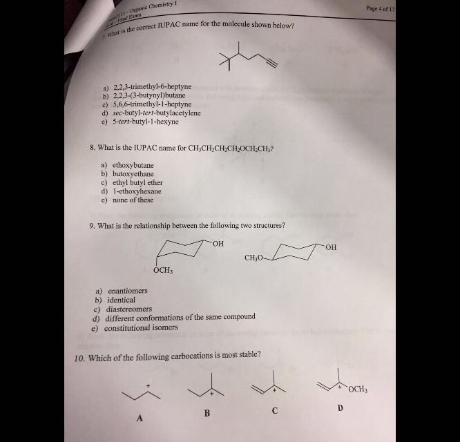 Solved 17 What Is The Iupac Name For The Molecule Shown Chegg Com