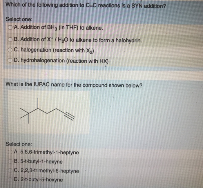 Solved O B 5 T Butyl 1 Hexyne C 5 6 6 Trimethyl 1 Heptyn Chegg Com