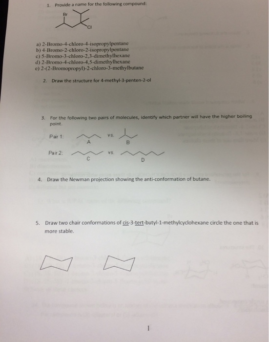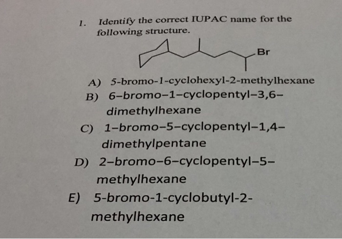 Solved 1 Identify The Correct Iupac Name For The Followi