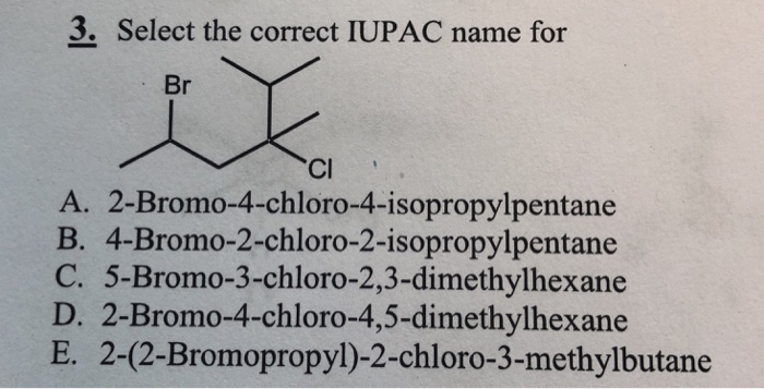 Solved 3 Select The Correct Iupac Name For Br Cl A 2 Br