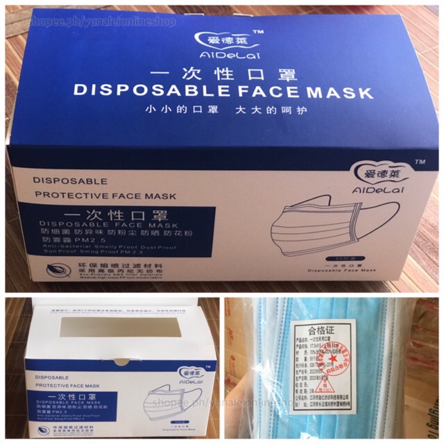 Authentic Aidelai Face Mask Surgical 3 Ply Pm 2 5 Non Woven Cod Shopee Philippines