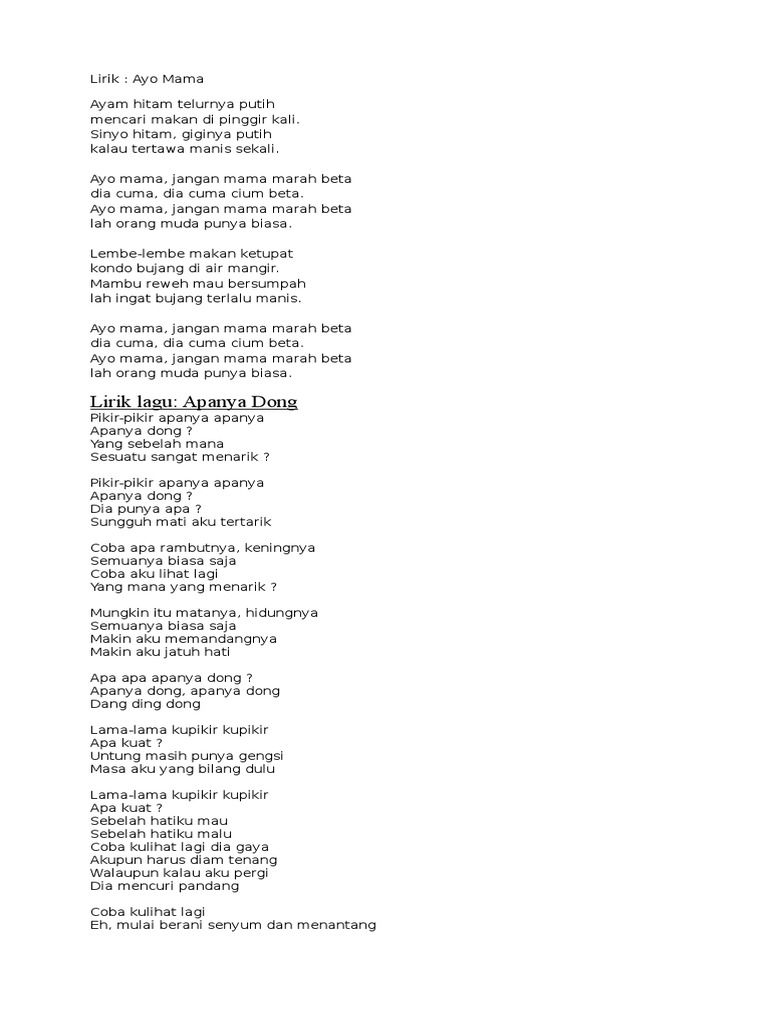 Apanya Dong Lirik Youtube